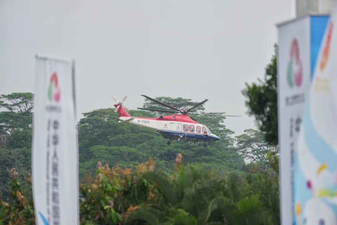 搭载着全运火炬的直升机